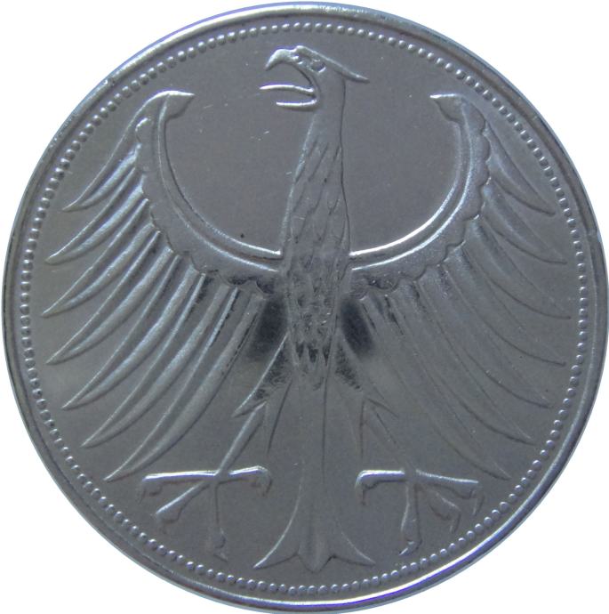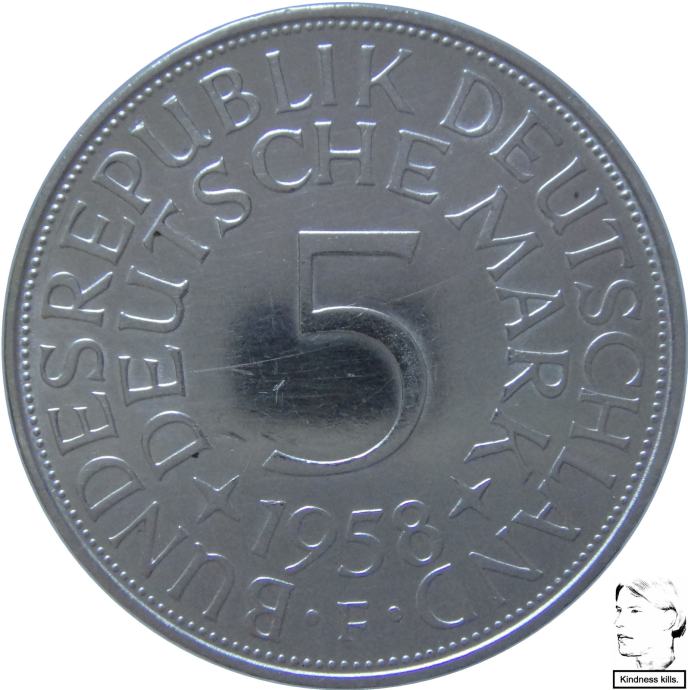 LaZooRo: Nemčija 5 MARK 1958 F PROOF zelo redek - Srebro