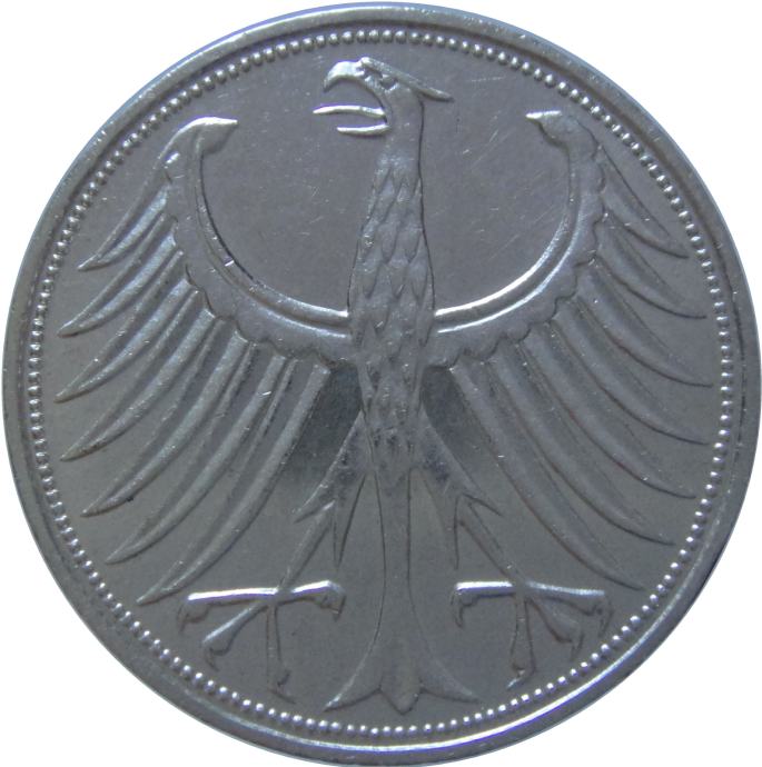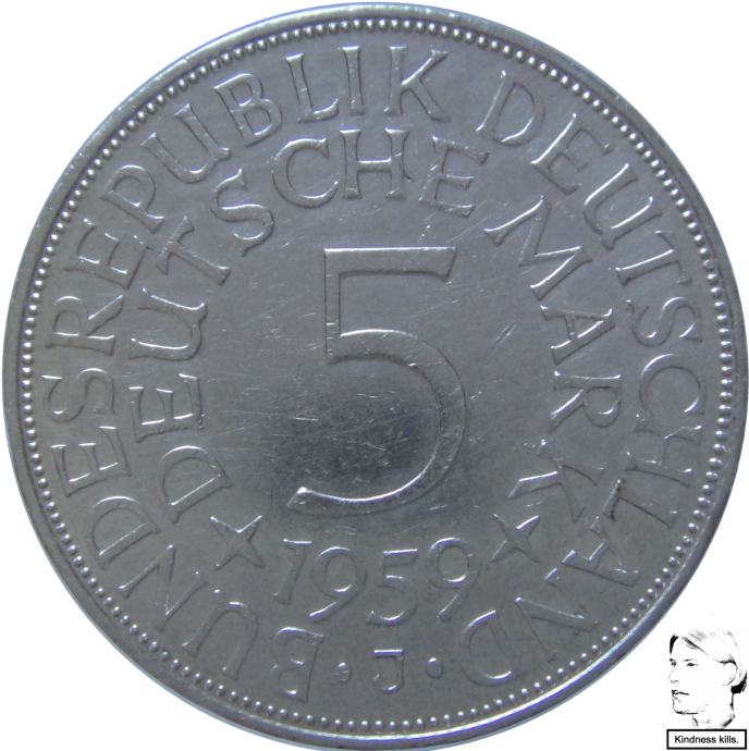 LaZooRo: Nemčija 5 MARK 1959 J PROOF zelo redek - Srebro