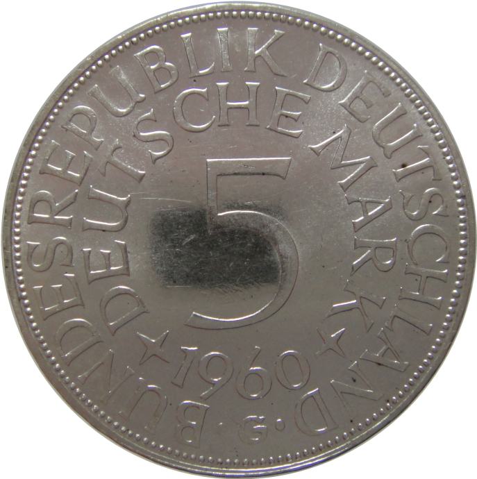 LaZooRo: Nemčija 5 MARK 1960 G PROOF zelo redek - Srebro