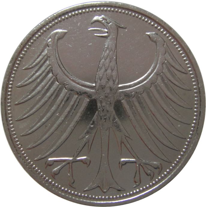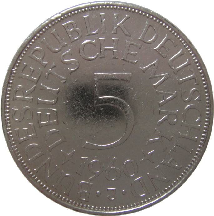 LaZooRo: Nemčija 5 MARK 1960 J PROOF zelo redek - Srebro