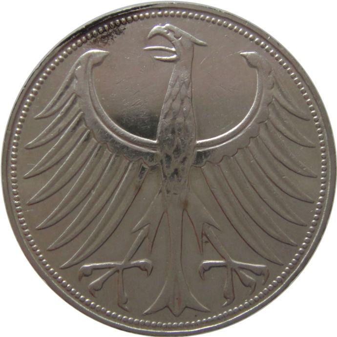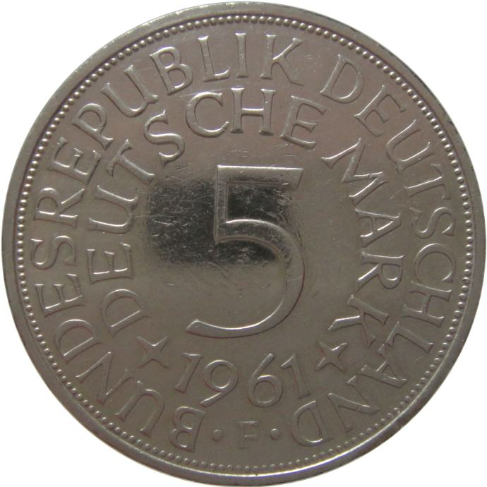 LaZooRo: Nemčija 5 MARK 1961 F PROOF zelo redek - Srebro