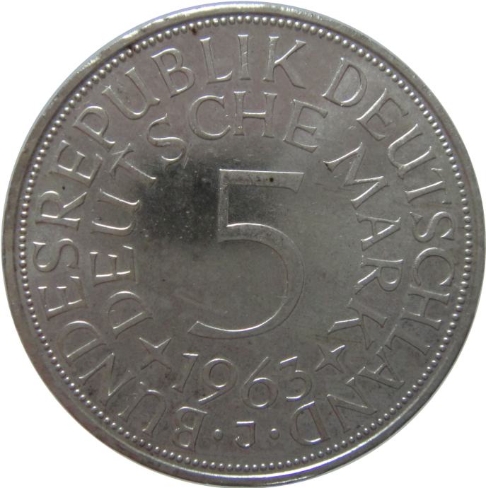 LaZooRo: Nemčija 5 MARK 1963 J PROOF zelo redek - Srebro