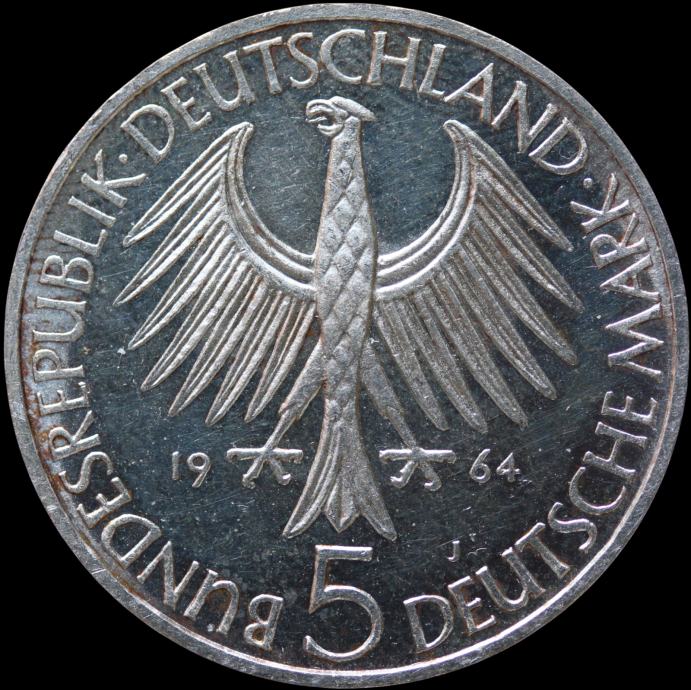 LaZooRo: Nemčija 5 Mark 1964 J Johann Fichte PROOF redek - srebro