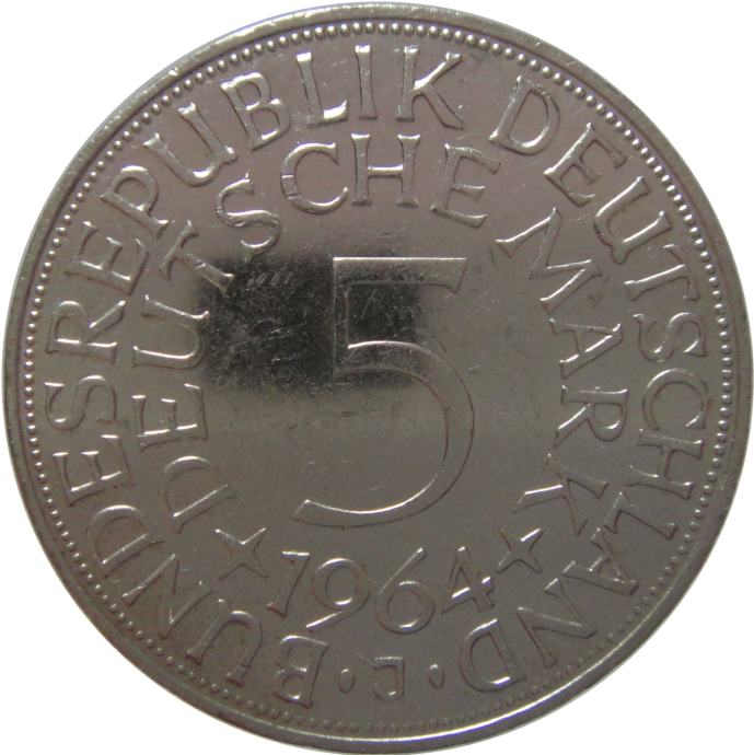 LaZooRo: Nemčija 5 MARK 1964 J PROOF zelo redek - Srebro