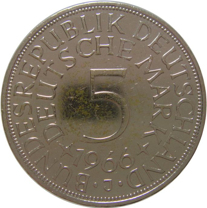 LaZooRo: Nemčija 5 MARK 1966 J PROOF redkejši - Srebro