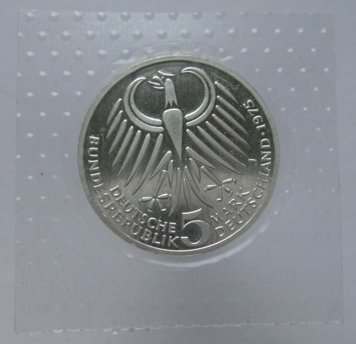 LaZooRo: Nemčija 5 Mark 1975 J PROOF Ebert redkejši - Srebro