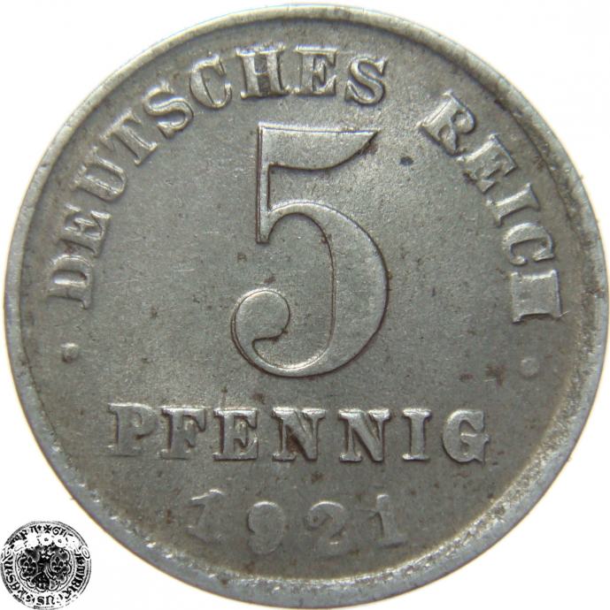 LaZooRo: Nemčija 5 Pfennig 1921 G XF