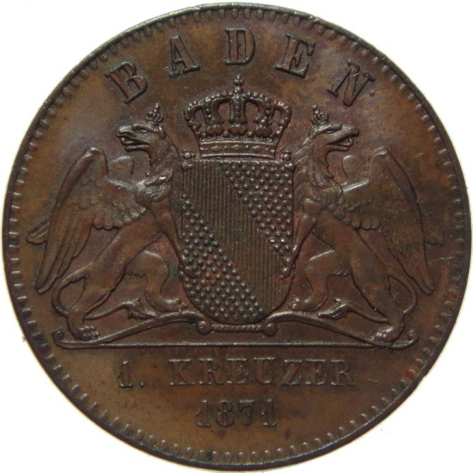 LaZooRo: Nemčija BADEN 1 Kreuzer 1871 BU