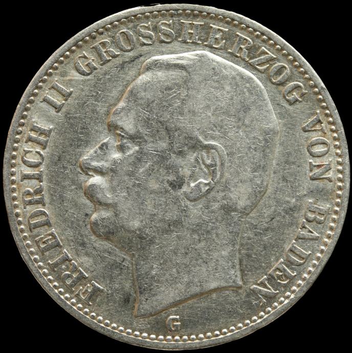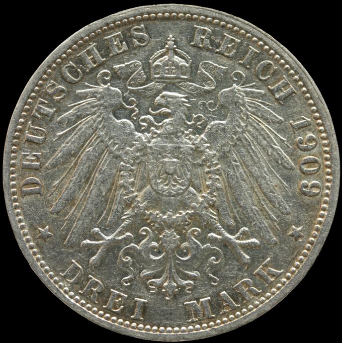 LaZooRo: Nemčija BADEN 3 Mark 1909 G XF / UNC - srebro
