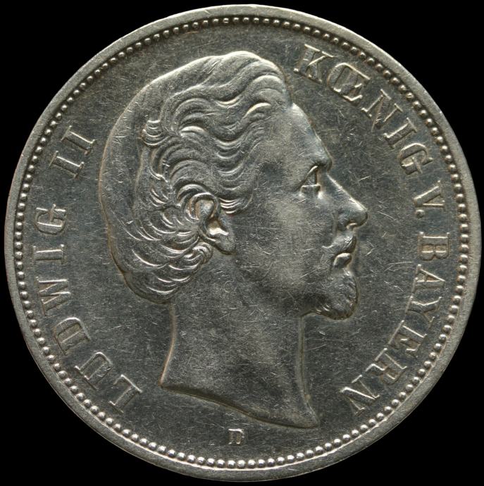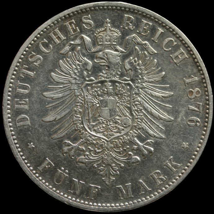 LaZooRo: Nemčija BAVARIA 5 Mark 1876 D XF - srebro