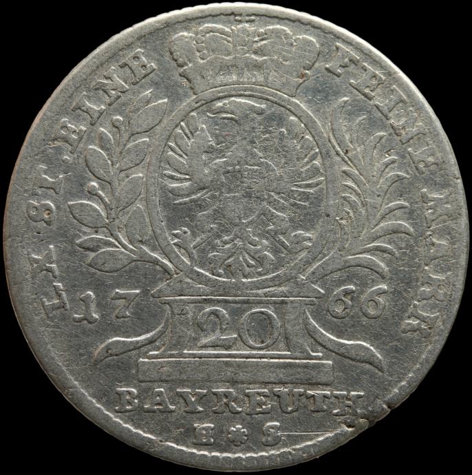 LaZooRo: Nemčija BRANDENBURG - BAYREUTH 20 Kreuzer 1766 ES XF - Srebro