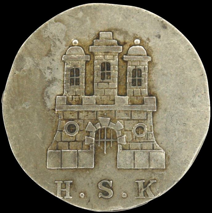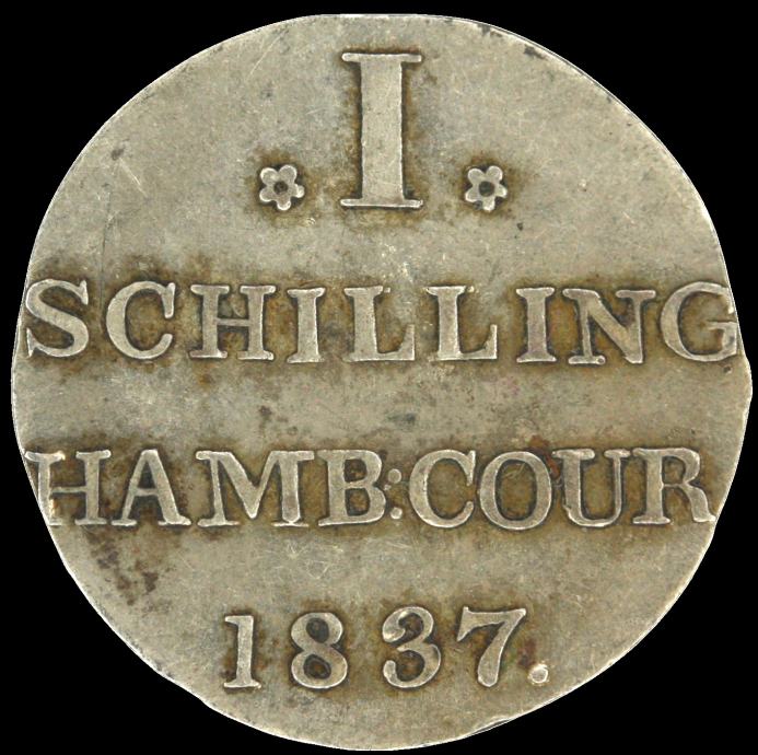 LaZooRo: Nemčija HAMBURG 1 šiling 1837 XF / UNC - srebro