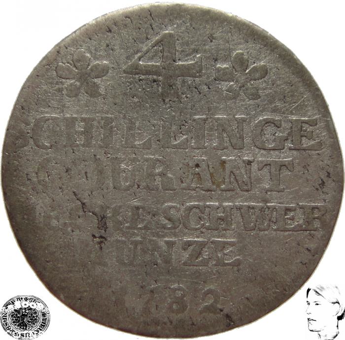 LaZooRo: Nemčija MECKLENBURG-SCHWERIN 4 Schilling 1782 VG redek - Srebro