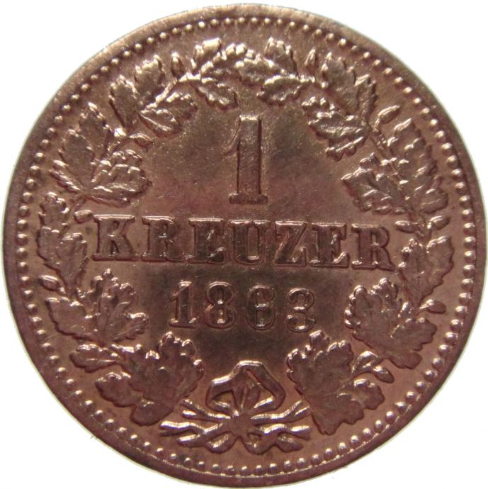 LaZooRo: Nemčija NASSAU 1 Kreuzer 1863 UNC