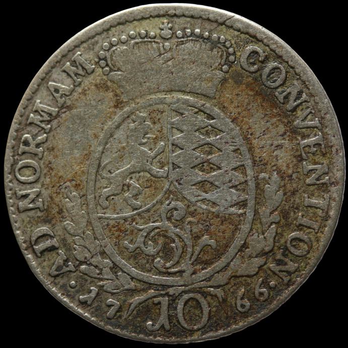 LaZooRo: Nemčija PFALZ 10 Kreuzer 1766 AS VF - srebro