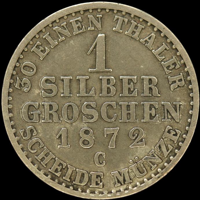 LaZooRo: Nemčija PRUSKA 1 Groschen 1872 C UNC - srebro