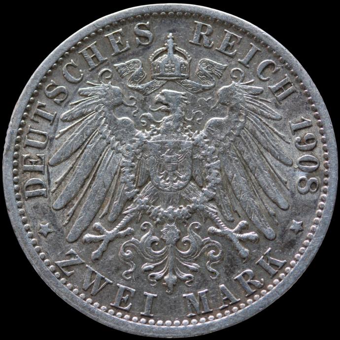 LaZooRo: Nemčija PRUSKA 2 Mark 1908 A XF / UNC - srebro