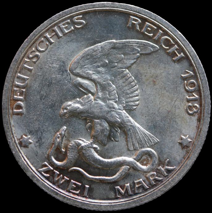 LaZooRo: Nemčija PRUSKA 2 Mark 1913 A UNC 100 let - Poraz Napoleona - srebro