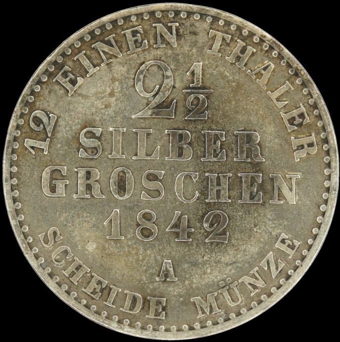 LaZooRo: Nemčija PRUSSIA 2-1/2 Groschen 1842 A VF / XF - srebrna