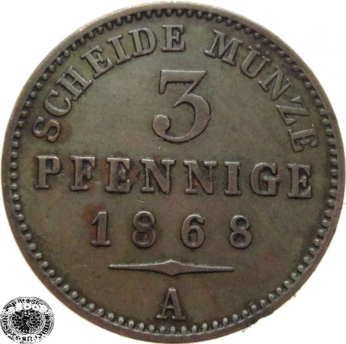 LaZooRo: Nemčija REUSS-SCHLEIZ 3 Pfenning 1868 A XF redkejši