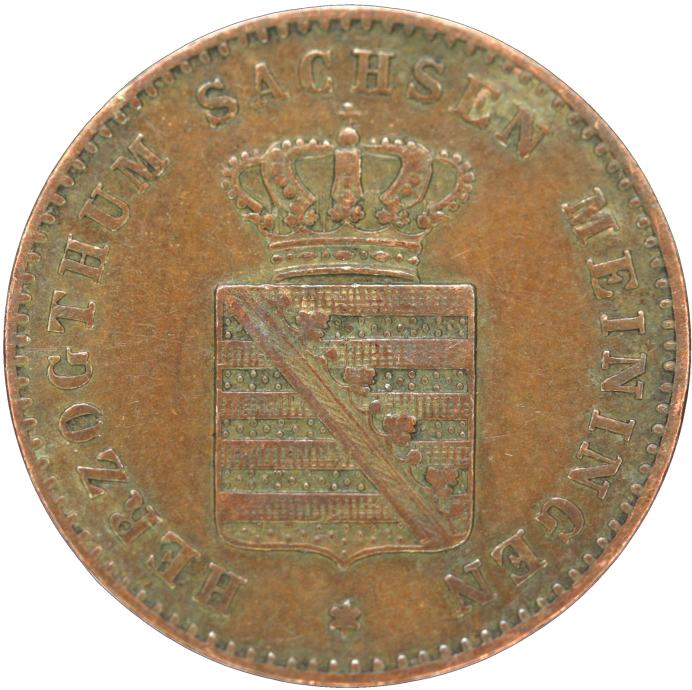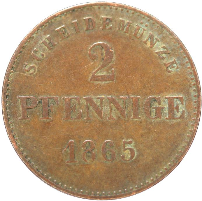 LaZooRo: Nemčija SAKS - MEININGEN 2 Pfennig 1865 VF / XF