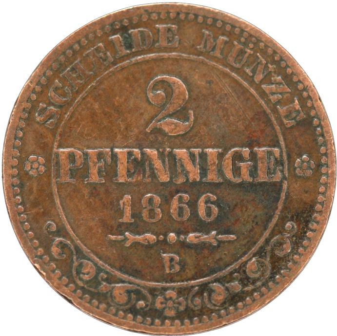 LaZooRo: Nemčija SAKSONIJA - ALBERTIN 2 Pfennig 1866 B VF / XF