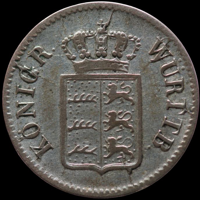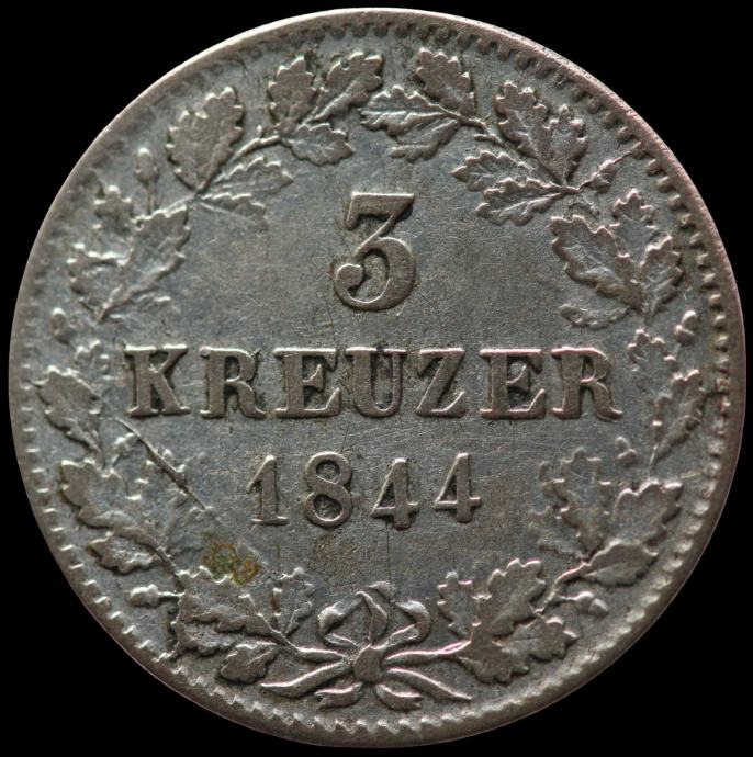 LaZooRo: Nemčija WÜRTTEMBERG 3 Kreuzer 1844 XF razpoke matrice - srebro