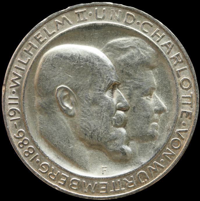 LaZooRo: Nemčija WÜRTTEMBERG 3 Mark 1911 F XF / UNC Srebrna obletnica poroke - srebro