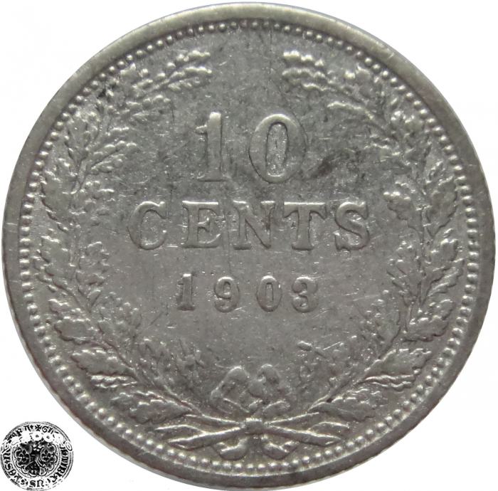 LaZooRo: Nizozemska 10 Cents 1903 XF - Srebro