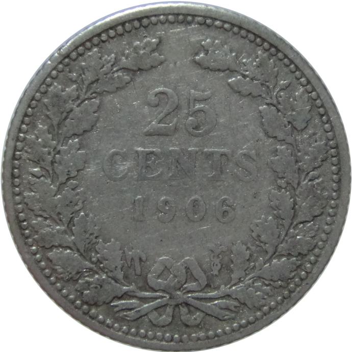 LaZooRo: Nizozemska 25 Cents 1906 VF a - Srebro