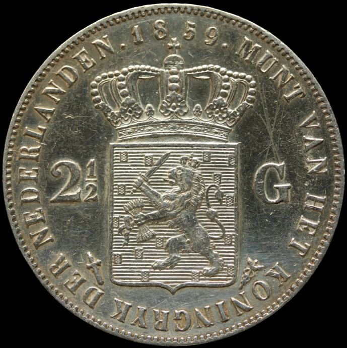 LaZooRo: Nizozemska 2 1/2 Gulden 1859 XF - Srebro