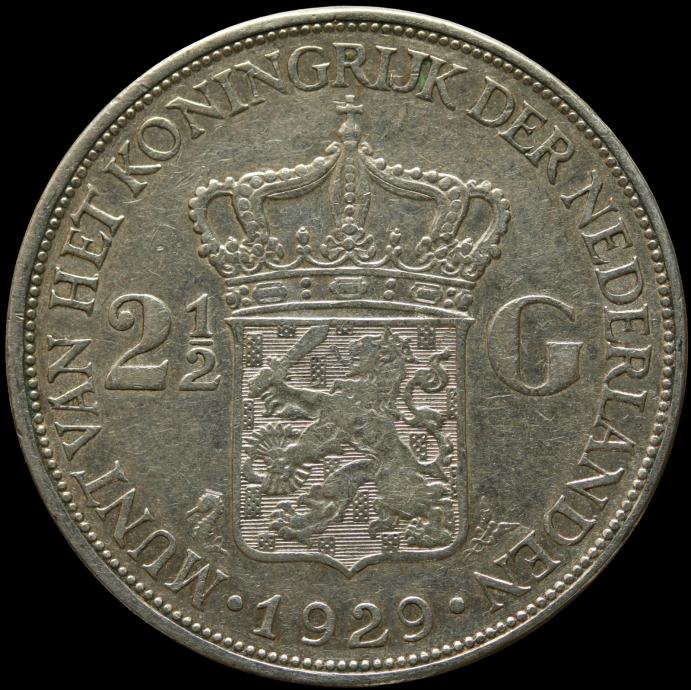 LaZooRo: Nizozemska 2 1/2 Gulden 1929 XF - srebro