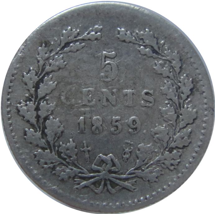 LaZooRo: Nizozemska 5 Cents 1859 VF - Srebro