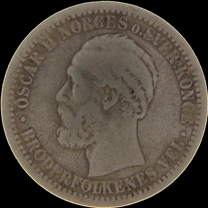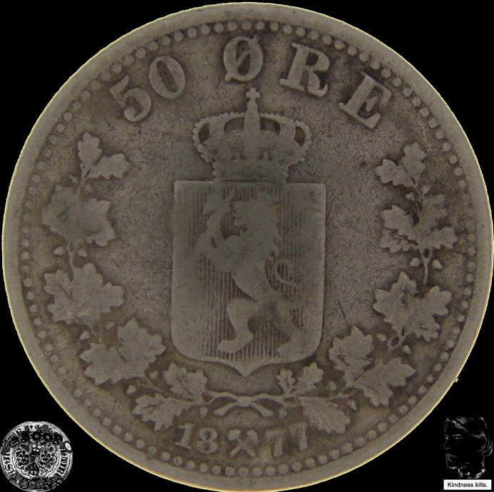 LaZooRo: Norveška 50 Ore 1877 VF - srebro