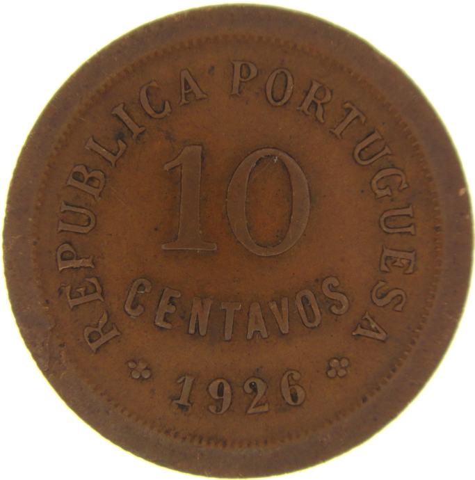 LaZooRo: Portugalska 10 Centavos 1926 VF / XF