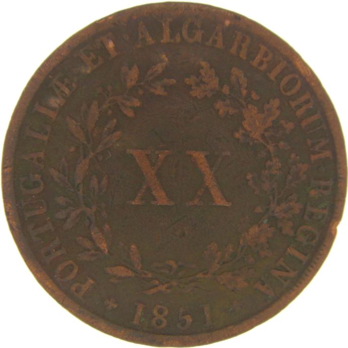 LaZooRo: Portugalska 20 Reis 1851 VF / XF