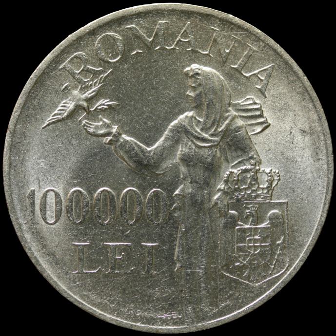LaZooRo: Romunija 100000 Leu 1946 UNC - srebro