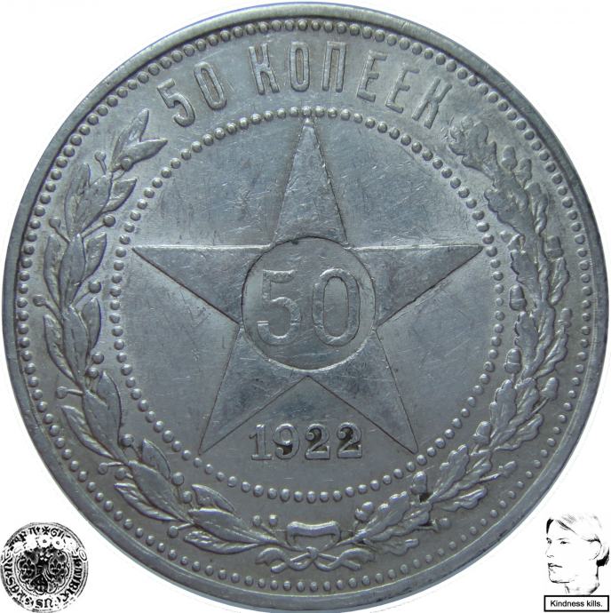 LaZooRo: Rusija 1/2 Rouble 50 Kopeks 1922 PL UNC b - Srebro