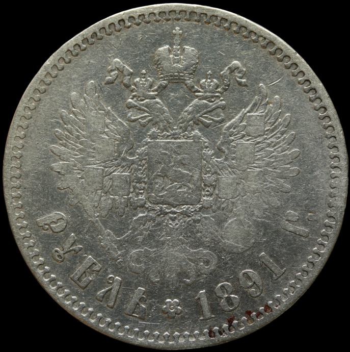 LaZooRo: Rusija 1 Rouble 1891 VF / XF redkejši - Srebro