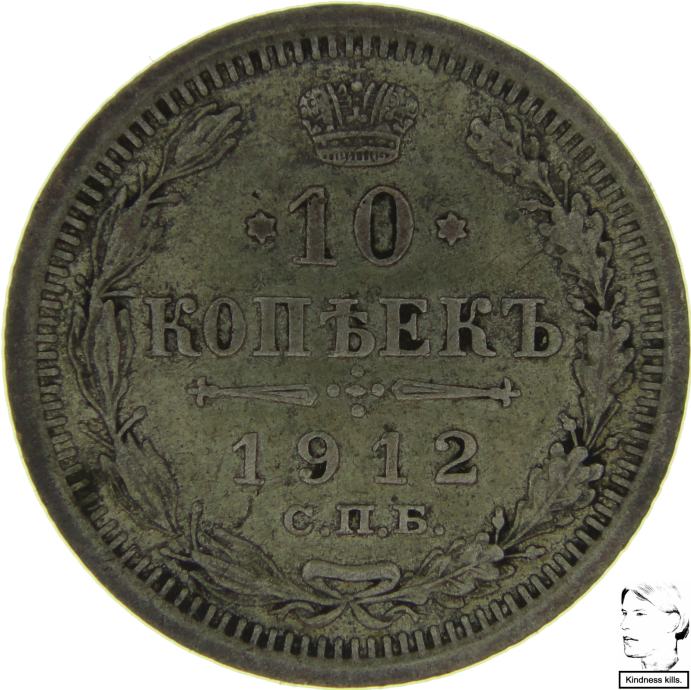LaZooRo: Rusija 10 Kopeks 1912 ZB XF / UNC - srebro