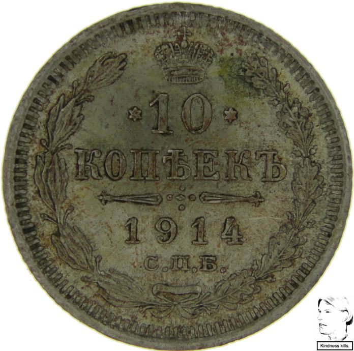 LaZooRo: Rusija 10 Kopeks 1914 VC UNC - srebro