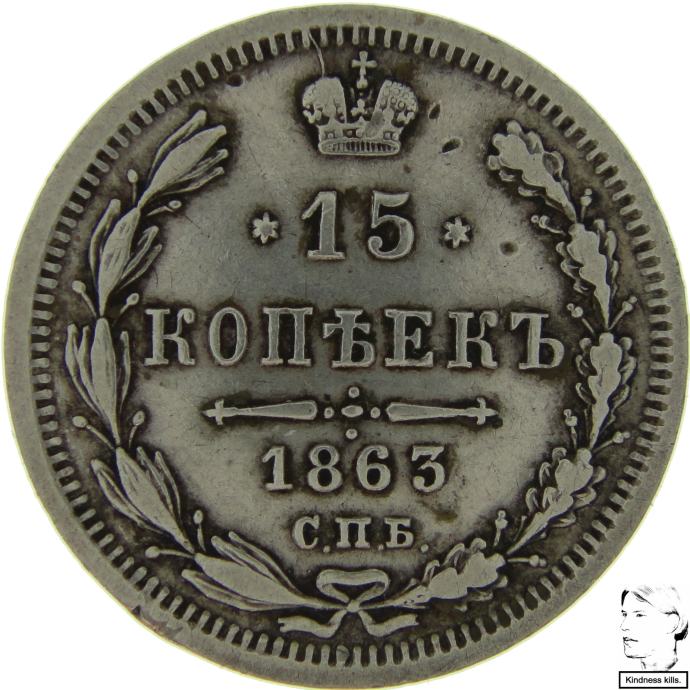LaZooRo: Rusija 15 Kopeks 1863 LB namesto AB XF - srebro