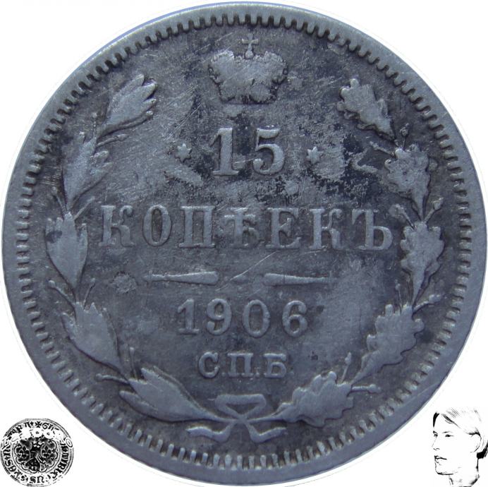 LaZooRo: Rusija 15 Kopeks 1906 F a - Srebro
