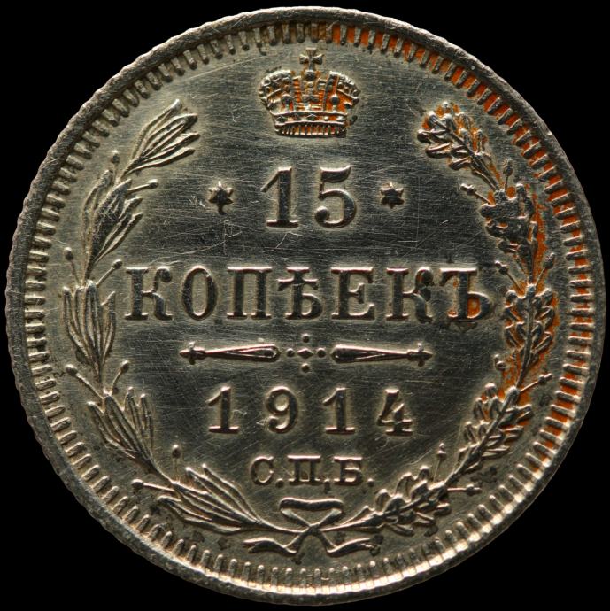 LaZooRo: Rusija 15 Kopeks 1914 PROOF - Srebro