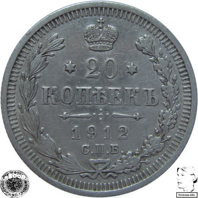 LaZooRo: Rusija 20 Kopeks 1912 XF/UNC - Srebro