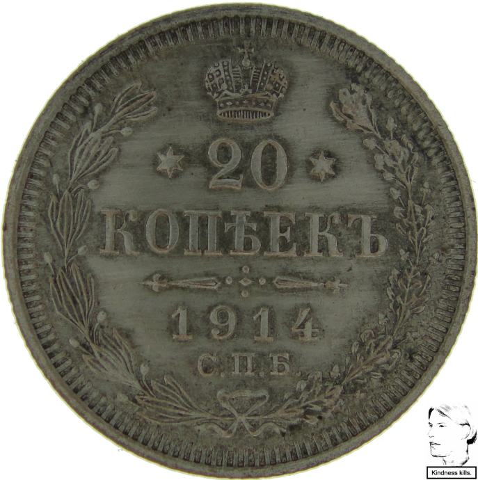 LaZooRo: Rusija 20 kopeks 1914 UNC - srebro