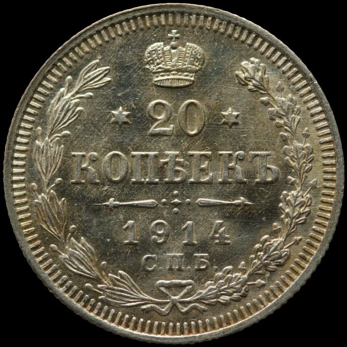 LaZooRo: Rusija 20 Kopeks 1914 VS PROOF rahla preslikava - srebro