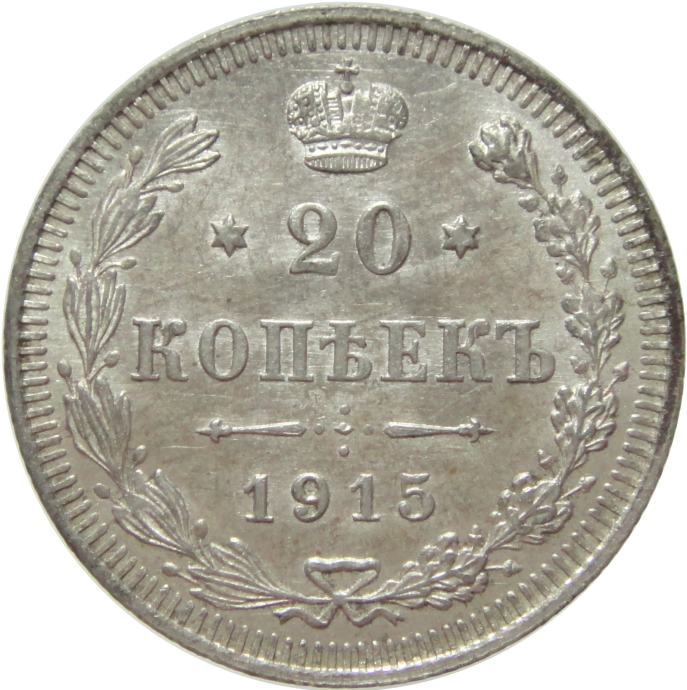 LaZooRo: Rusija 20 Kopeks 1915 UNC - Srebro
