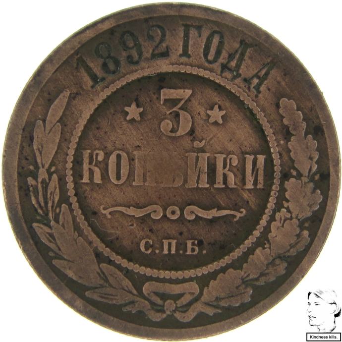 LaZooRo: Rusija 3 kopeke 1892 SPB VF ključni datum