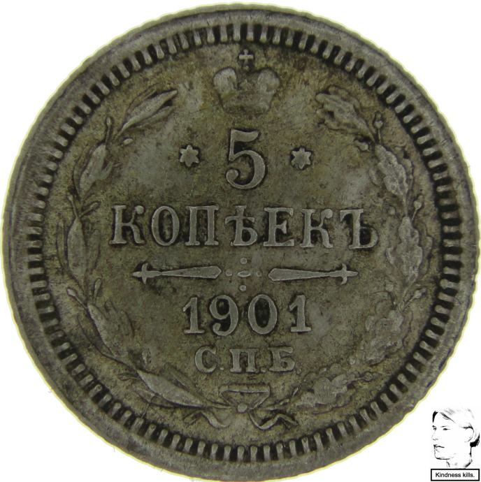 LaZooRo: Rusija 5 Kopeks 1901 FZ UNC - srebro